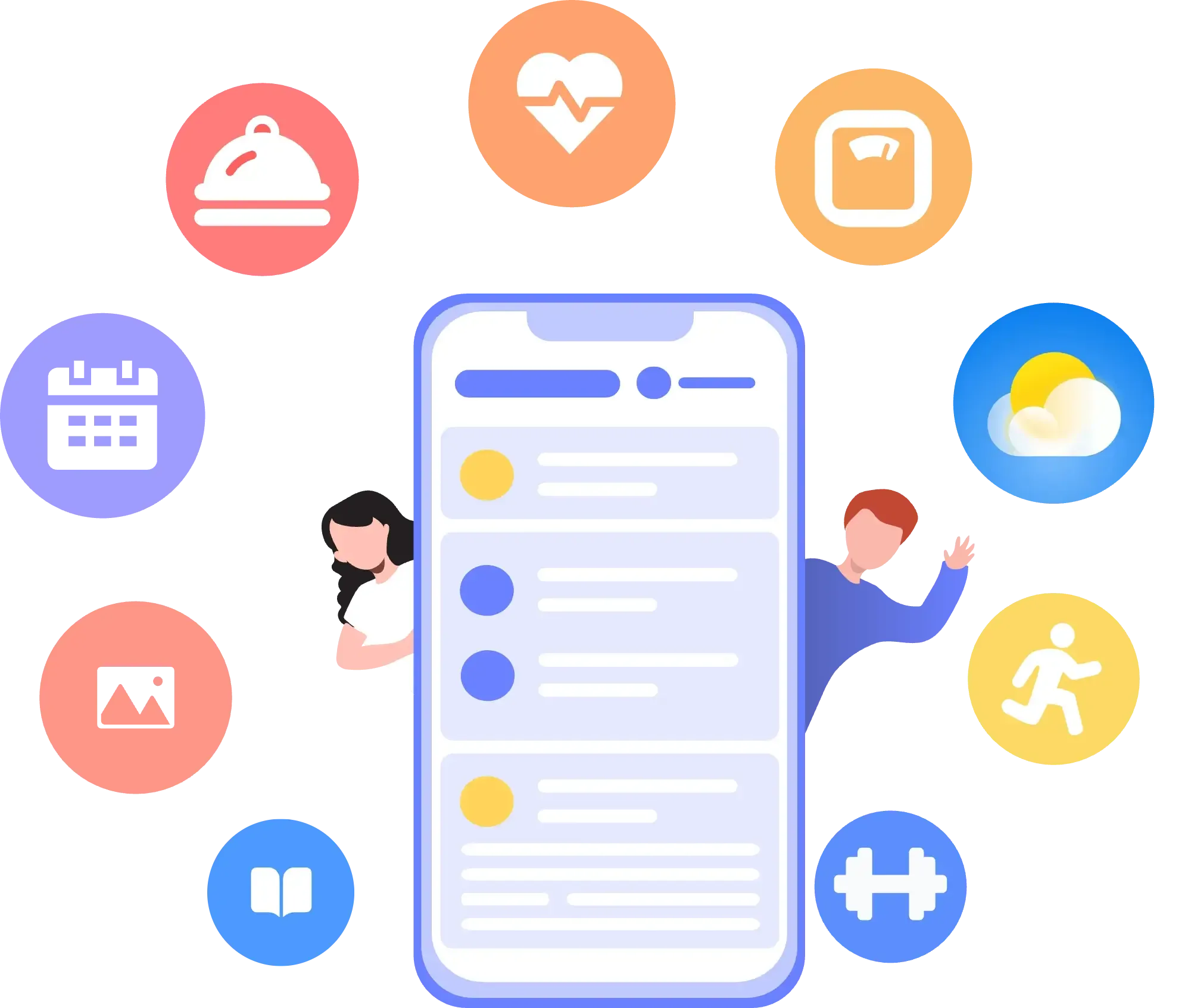 Custom H5 sites for news and health, enabling seamless interaction on wearables and mobile devices.